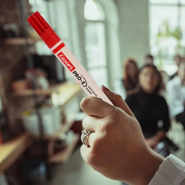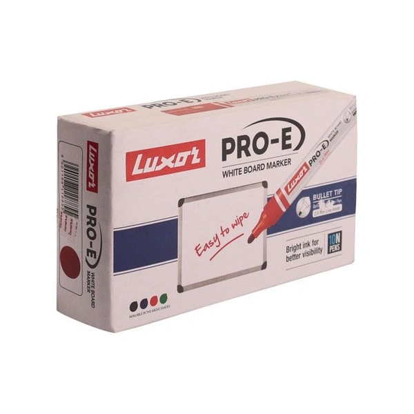 Unleash the full potential of your presentations and educational sessions with the Luxor Pro-E Refillable White Board Marker with extra replacement tip, now available in a striking red color. Exclusively sold at Royal Stationers, these markers are designed to provide a seamless writing experience, making them an indispensable tool for professionals, educators, and anyone who values quality and sustainability.