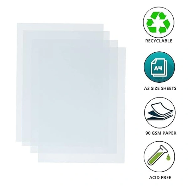 Tracing Paper A3(Size:- 11.7 x 16.5 inches)90GSM Acid Free Recyclable Translucent 100 SHEET | Royal Stationers Best Quality Guarantee