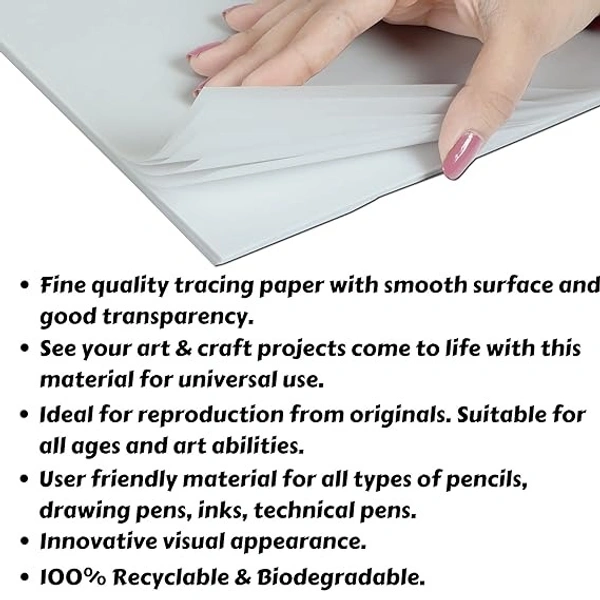 - Fine quality tracing paper with smooth surface and good transparency.